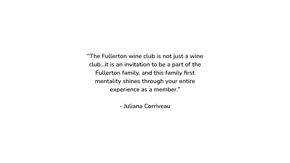 For those seeking a deeper exploration of the Fullerton Wines’ portfolio, you will receive 6 bottles per shipment at a 20% discount. You are invited to all of our member-only events, and may bring 3 guests with you.